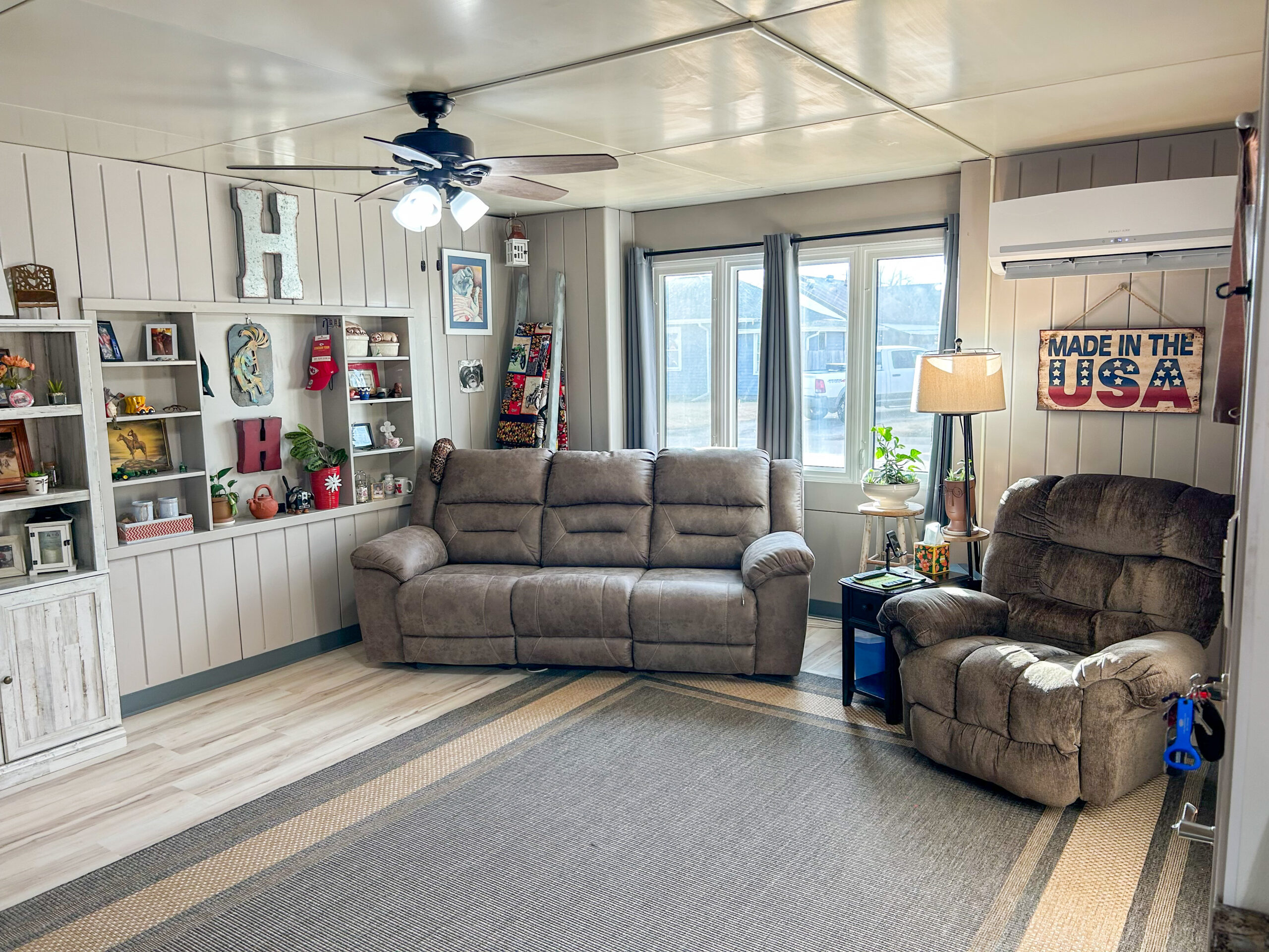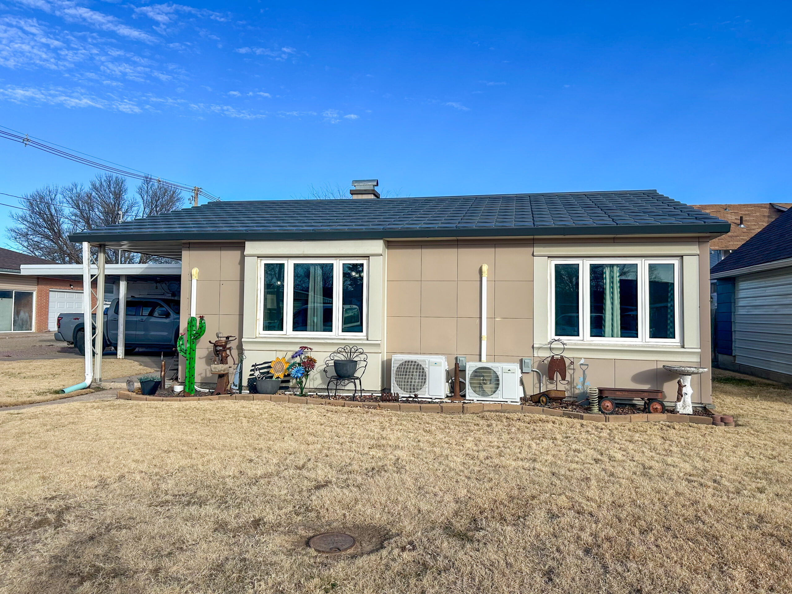 Lustron home with many new or updated improvements. 990 square foot home with 2 bedrooms, living room, kitchen, dining and bath. Full utility off kitchen. This home has so many features you must see to appreciate. Maintenance free, good location, appliances are included and affordable living. Fenced back yard with covered lean building, car port and storage shed.