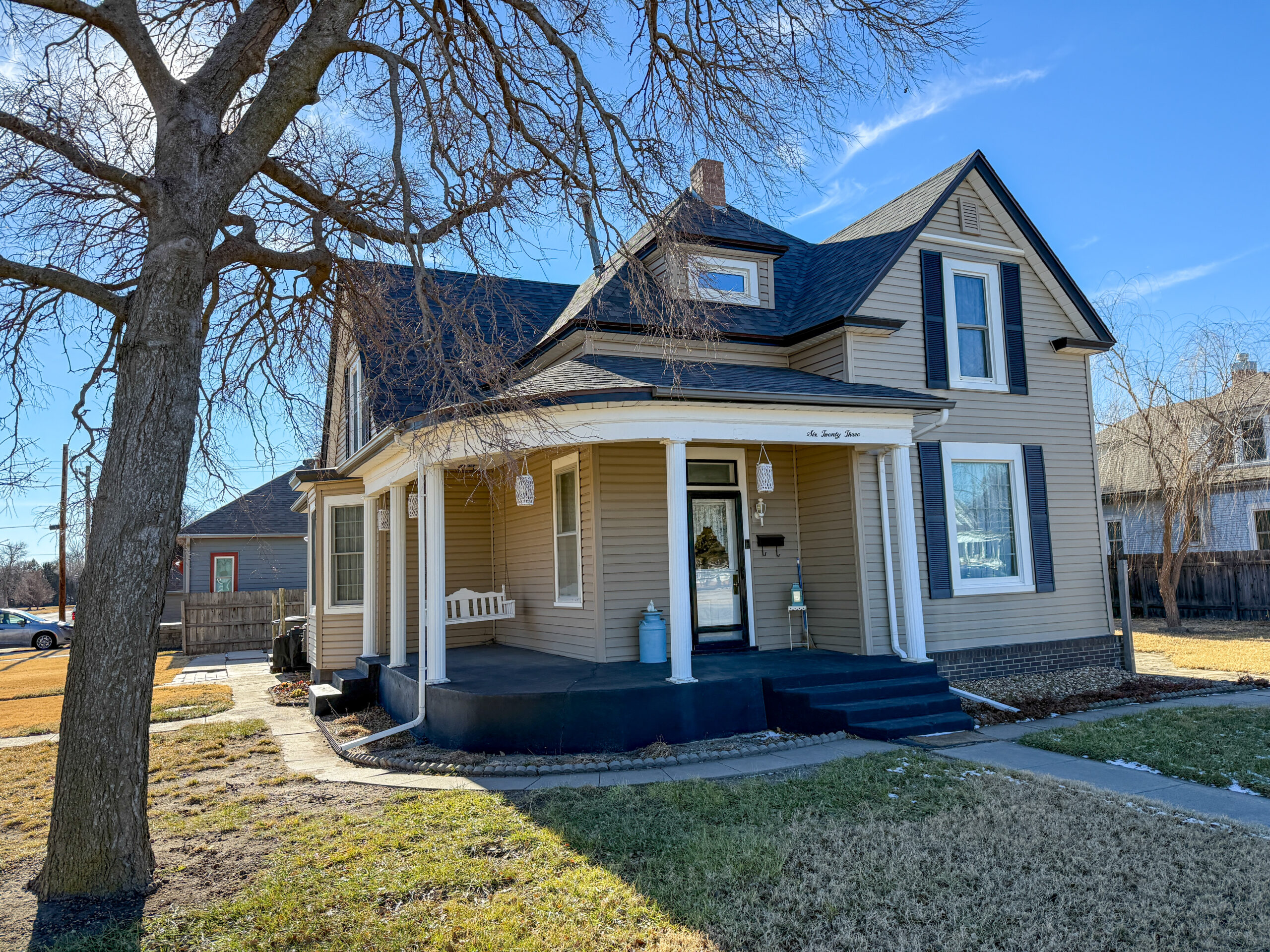 Pride of ownership shines throughout this immaculate, move-in-ready two-story home, ideally situated on a corner lot. The exterior offers vinyl siding, replacement windows, a newer roof, and a charming front porch, perfect for relaxing or entertaining. A spacious side yard, partially enclosed with privacy fencing, adds appeal.