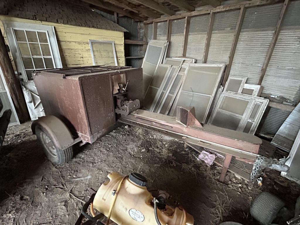 Shop Items: Oxy Acetyline Unit – B&D 8” 5 Speed Drill Press – Clark Weld Mig 130 EN Wire Welder 110v – Welding Helment – DeWalt Planer & Drill – Jigsaw – Palm & Belt Sander – Hitachi 7” Disc Grinder – DeWalt Hammer Drill – Rotary Tool – Misc. Hand Tools – Shop Lights – Tool Boxes – Planers – Sears/Craftsman Radial Arm Saw – Craftsman Router & Table – Misc. Nail Guns – Bench Grinder – Shop Vacs – Jumper Cables – Roofing Tear Off Tools – Sheet Rock Tools – Ladders – Drain Cleaner Machine – Large Winch – Saw Horses – Gas Cans – Rigid Job Box – Boomers – Fence Stretchers – New ½ HP Electric Motor – Come A Long – Pegasus Mobil Metal Signs