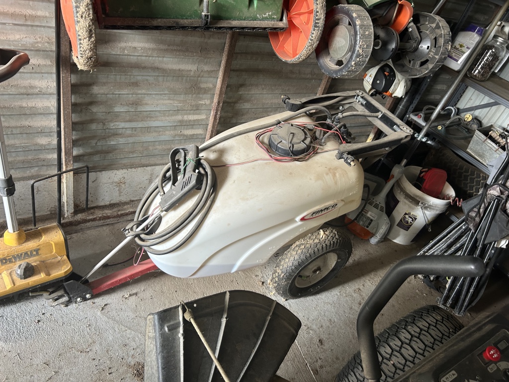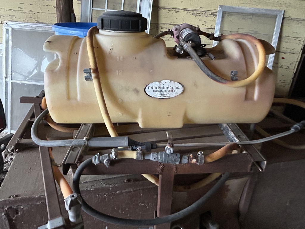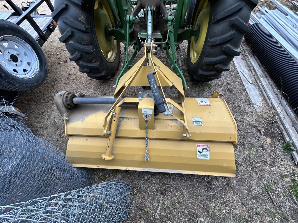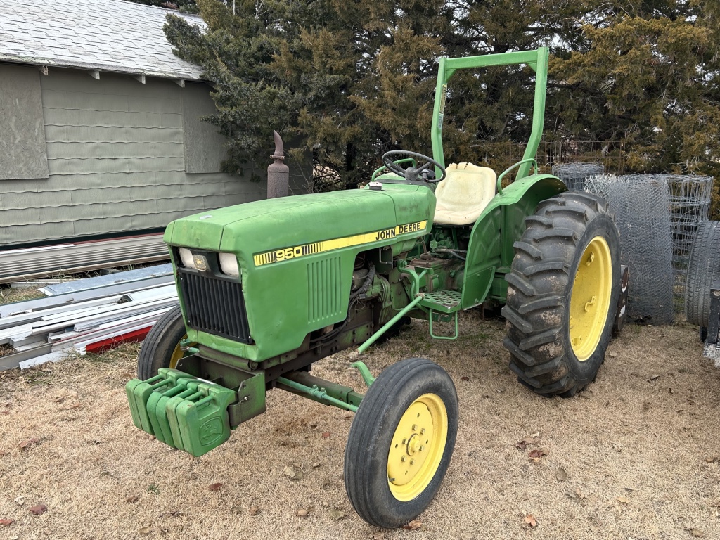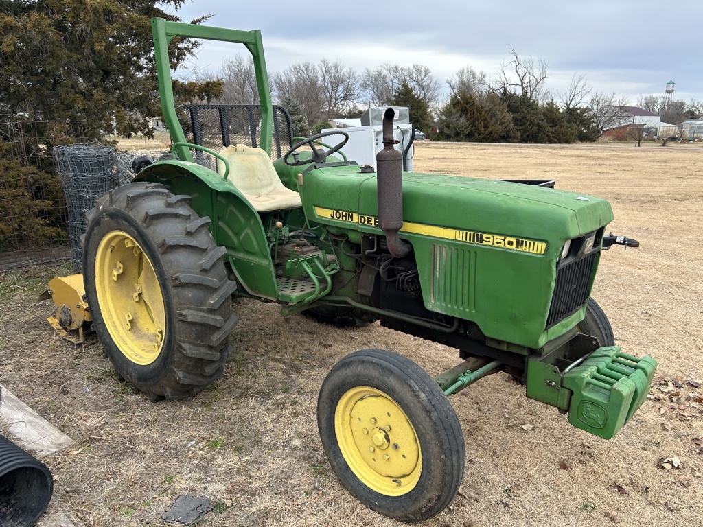Tractor & Attachments: John Deere 950 Tractor, Diesel, 3 Pnt, 540 PTO, 6,306 Hrs, Hi & Lo, 13.6-28 Rear & 6.00-16 Front SN 0950S015245 – 6’ 3 Pnt Cimarron Mower, 540 PTO – Landpride 3 Pnt 7’ Backblade Model # RB2584 – 3 Pnt 5’ Behlen Country Tiller, 540 PTO – Metal Racks for Receiver Hitch – 14 Gallon Sprayer w/ Booms – Fimco 30 Gallon Pull Sprayer