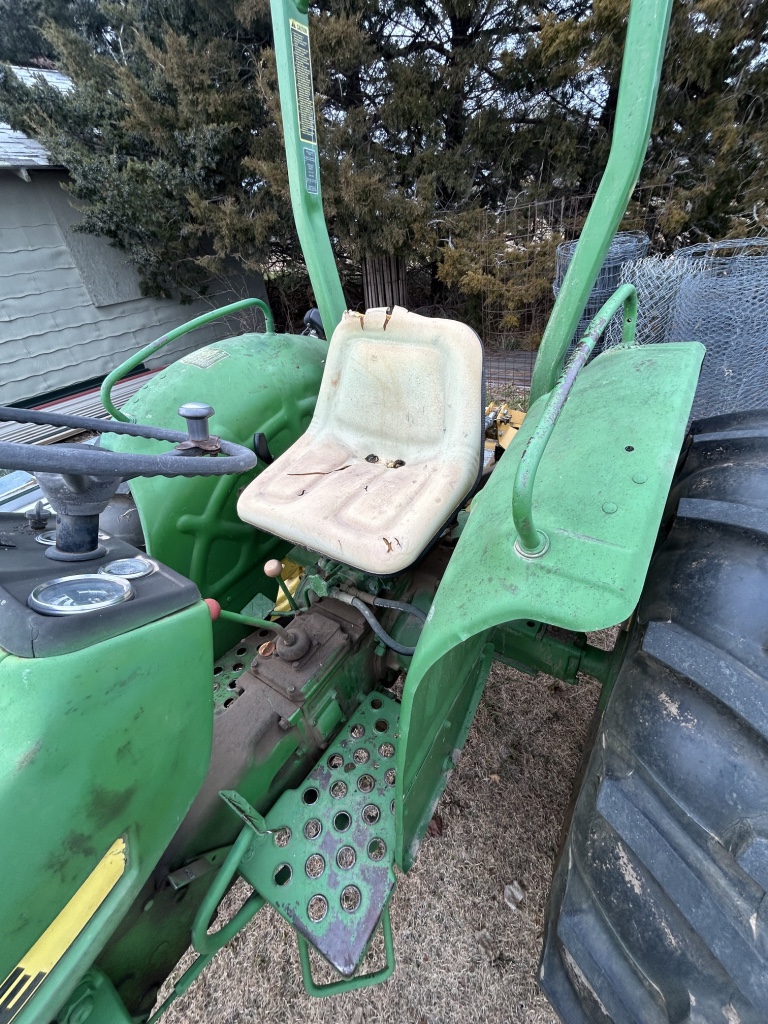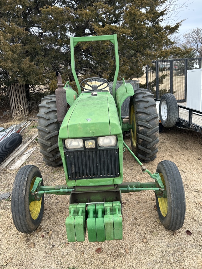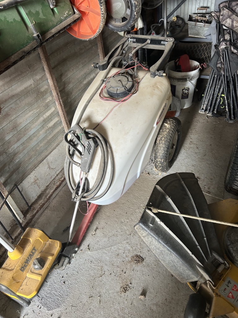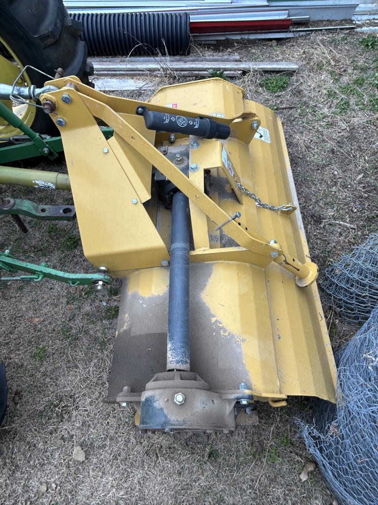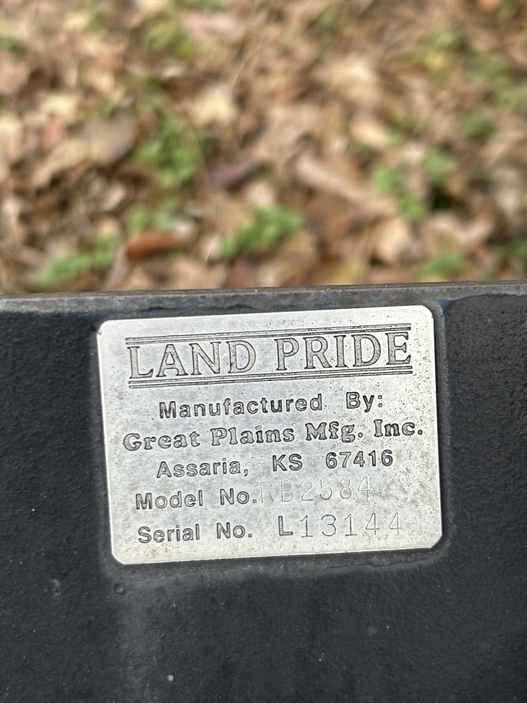 Tractor & Attachments: John Deere 950 Tractor, Diesel, 3 Pnt, 540 PTO, 6,306 Hrs, Hi & Lo, 13.6-28 Rear & 6.00-16 Front SN 0950S015245 – 6’ 3 Pnt Cimarron Mower, 540 PTO – Landpride 3 Pnt 7’ Backblade Model # RB2584 – 3 Pnt 5’ Behlen Country Tiller, 540 PTO – Metal Racks for Receiver Hitch – 14 Gallon Sprayer w/ Booms – Fimco 30 Gallon Pull Sprayer