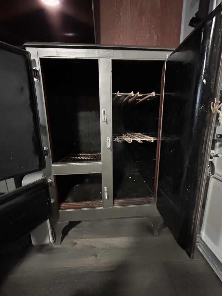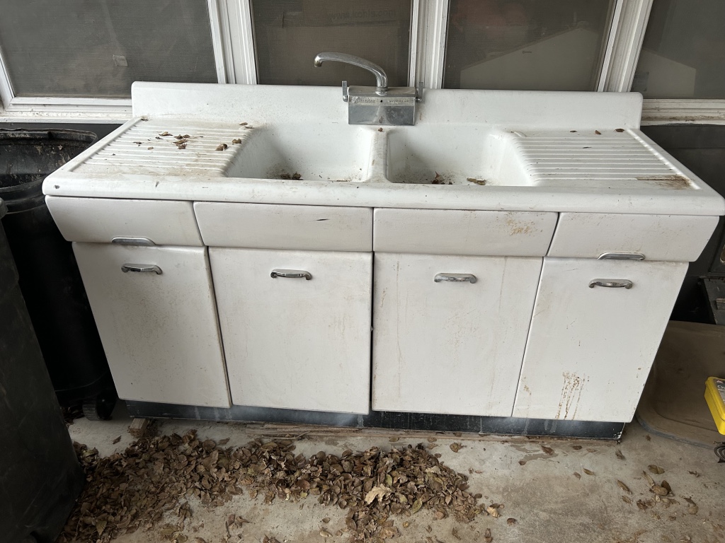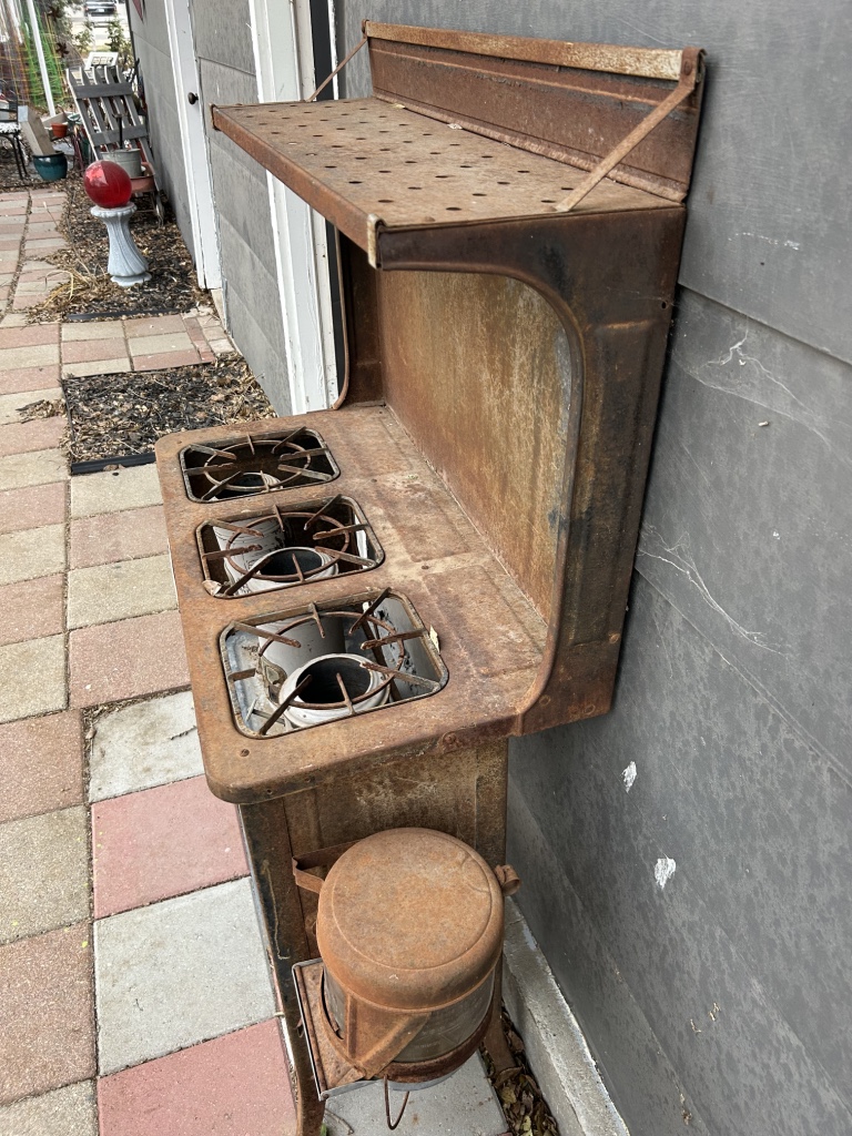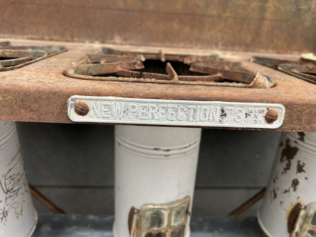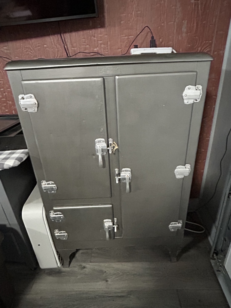 Freezers & Household Items: Kenmore & Admiral Upright Freezers – 2 Husky 52” W x 24” D 2 Drawer Adjustable Height White Workbench Table w/ Solid Wood Top Tables on Rollers – Hammon The Pioneer All Steel Refrigerator Since 1908 (Vintage Ice Box) – Hoiser Cabinet – New Perfection 73 Stove – Vintage Gates – Vintage Metal Sink – Electric Canner