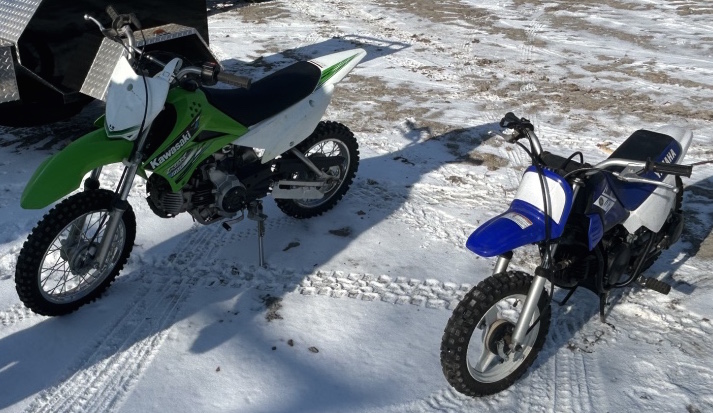 Vehicles & Motor Cycles: 2002 Chevy Silverado 2500 HD Pickup w/ Rawson-Koenig Utility Box, 6.0 Liter, Auto Transmission, 178K Miles – 2000 Chevy Blazer 4×4 (Needs a head Gasket) – 1996 Harley Davidson HD Sportster 886, 23K Miles – Honda Moped – 2013 Yamaha PW 50 Mini Dirt Bike – 2013 Kawasaki KL 110 Dirt Bike -Trailer to pull behind motorcycle, New Tires, Torsion Axle, Swivel Hitch