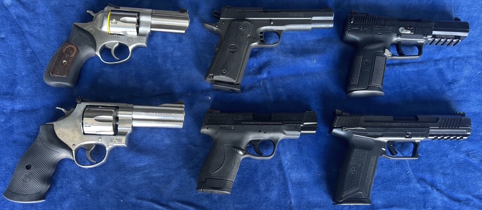 Pistols: Glock 41 Gen4 .45 Auto – Smith & Wesson BodyGuard 380 Insight Laser – Walther P22 CA .22LR w/Laser – Ruger Max 9 9MM Luger – Remington 870 12 Ga. 2 ¾ or 3 Shotgun – FNH57 5.7×28 – Ruger 57 5.7×28 – Smith & Wesson 610 Revolver, 4” Barrel Stainless (New) – Ruger GP 100 10 MM Revolver, 3” Barrel Stainless, Wiley Clapp Edition (New) – Smith & Wesson 40 Shield Performance Center 2.0 (New) – Rock Island Armory XTM 22 Mag