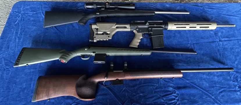 Long Guns: Smith & Wesson Model M&P 15-22 22 LR Muddy Girl w/ 3-9×40 Scope, Bulldog Sling, 2 Mags – Rock River Arms LAR-15 Cal 5.56 w. Nikon Prostaff Scope, Sling – American Tactical 5.56 w/ Cabela’s AR 3-12×44.308 Scope – CZ 527 Varmint 223 Rem, Threaded Barrel Prone Stock – Ruger American 223 Rem – Browning X Bolt Target 26” Fluted Stainless Barrel – Bergara B14 HMR 6.5 Creedmore – Armalite AR10 Match Stainless Barrel – Ruger M77 MarkII 22 LR Boat Paddle w/ Simmons Pro Hunter Scope – Ruger M77 MarkII 762.×39 Boat Paddle w/ Simmons AETec Scope – Savage BMag 17WSM – Savage A17 17 HMR w/ Nikon Buckmaster Scope – Steyr Aug A3 223 Rem – Howa1500M 22-250 – Howa 1500 Mini Action 6mm Arc – Kimber 84 Varmint 204 Ruger w/ Vortex Crossfire II Scope – G Force AR Style Shotgun 12 Ga (New)