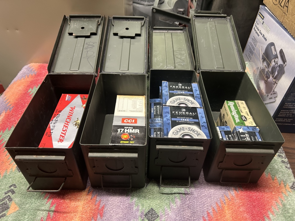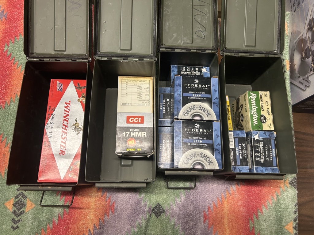 Crossbow, Ammo, Fishing Gear, Hunting & Traps: BARNETT XP 400 Crossbow w/4×32 Scope and Case – Large assortment of Ammo – Minnow Buckets – Metal Box Traps – Shooting CHRONY Chronograph Like New w/ Printer – Athlon Spotting Scope 20-60×80 – Damascus Knives – Shooting Supplies – Pistol Holsters – Range Finders & Binoculars – Ammo Boxes