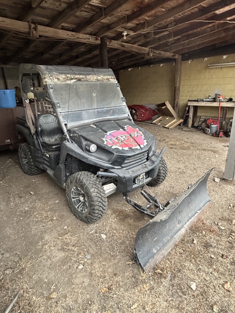 Side By Side, Golf Cart & ATV: 2011 TERYX Kawasaki 750 4×4, w/ 5’ Tilting Eagle Plow Blade, Fuel Injection, 855 Miles, 26×9.00R12 Tires – 1999 Club Car Golfcart w/ Classic Cover, Gas, Radio – 2012 Yamaha Raptor 90 4 Wheeler