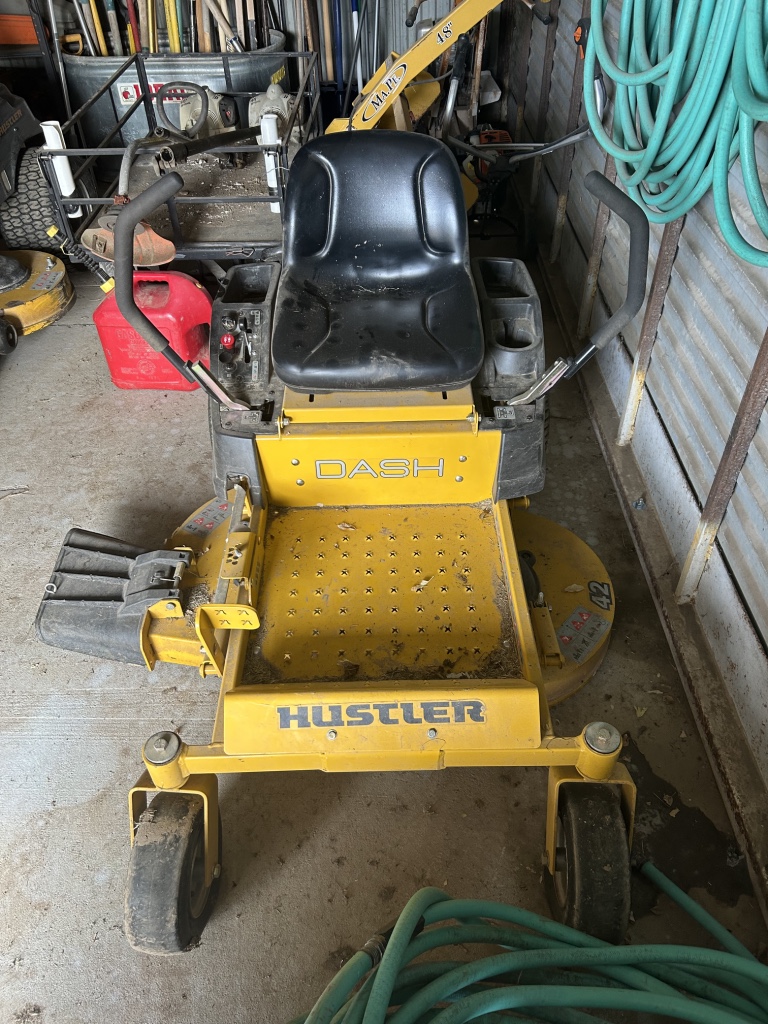 Mowers, Log Splitter & Generators: Hustler Raptor SD 54” 392 Hrs, Kohler 25 HP- Hustler Dash 42” 151 Hrs, 10.5 HP B&S – 50,000 LB Shop Built Log Splitter, 11 HP Wisconson Robin Engine, High Pressure Volume Pump, 36” Cylinder, Heavy Duty, Engine is enclosed – 2024 Champion 4500 Watt Inverter, Electric Start Dual Fuel, Gasoline & Propane 60 Hours – Cummins Industrial Tools 6500 Generator – Stihl FS 40C – Stihl HS 45 Trimmer – Stihl HT 56C Pole Saw – Stihl Limb Saw